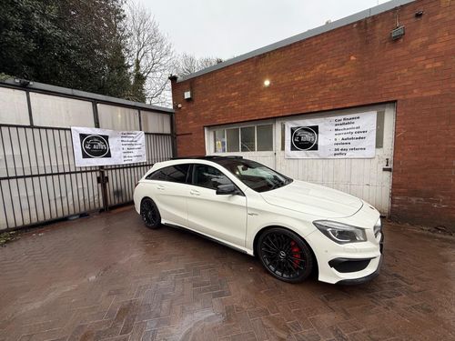 Used White Mercedes Benz CLA-Class 2.0 CLA45 AMG Shooting Brake SpdS DCT 4MATIC Euro 6 (s/s) 5dr for sale. Located in Coventry and ready to be test driven locally or delivered nationwide.