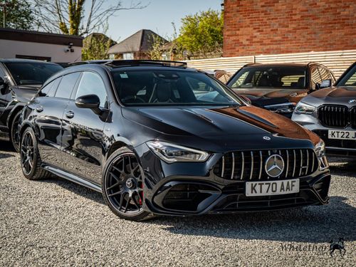 Used Black Mercedes Benz CLA 2.0 CLA45 AMG S Plus Shooting Brake 8G-DCT 4MATIC+ Euro 6 (s/s) 5dr for sale. Located in Leicester and ready to be test driven locally or delivered nationwide.