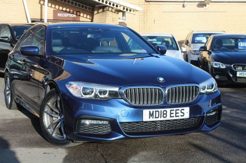 Used Blue BMW 5 Series 2.0 520i M Sport Saloon 4dr Petrol Auto Euro 6 (s/ for sale. Located in Luton and ready to be test driven locally or delivered nationwide.