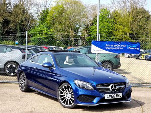 Used Blue Mercedes Benz C-Class 2.1 C220d AMG Line (Premium Plus) G-Tronic+ Euro 6 (s/s) 2dr for sale. Located in Peterborough and ready to be test driven locally or delivered nationwide.