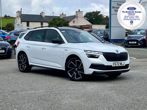 Used White Skoda Kamiq 1.5 TSI Monte Carlo 5dr for sale. Located in Anglesey and ready to be test driven locally or delivered nationwide.